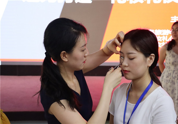 本次培訓特邀青島旅游學校航空專業(yè)張婭雯老師授課,張婭雯老師結合公司的行業(yè)特點及員工的工作生活實際,著重從個人肌膚狀況、膚質(zhì)、臉型等方面如何美容與化妝、著裝色彩搭配、服飾款型搭配等方面進行講解和演示。張老師通過互動的方式傳授給員工一些正確的護膚及塑形方法,并在女員工中選擇了一名模特進行現(xiàn)場實際操作演示,為員工現(xiàn)場打造適合自己的妝容。