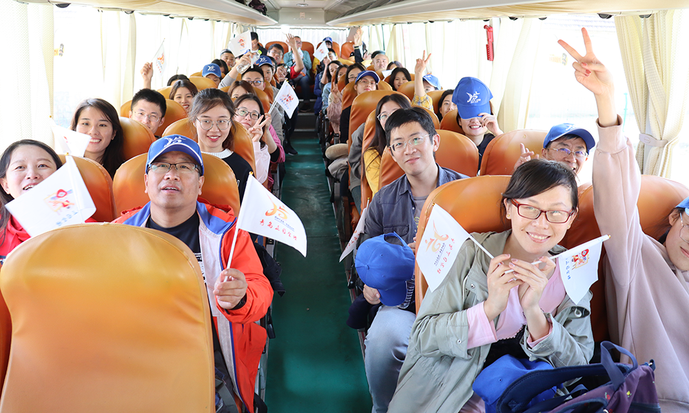 首先,由本次活動的總指揮徐坦副總經理對活動進行了總體安排,正日小伙伴們也領到了今日活動的第一份小驚喜——正日狀元旗和正日藍的帽子。浩浩蕩蕩的正日藍順著日照的山路像蜿蜒的河流,奔騰著沖向高峰。