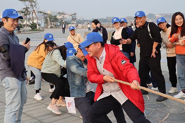武狀元拔河,六隊小狀元輪番上陣,加油聲,口號聲交織在一起,吸引了周圍了游客也參與過來為大家鼓勁。