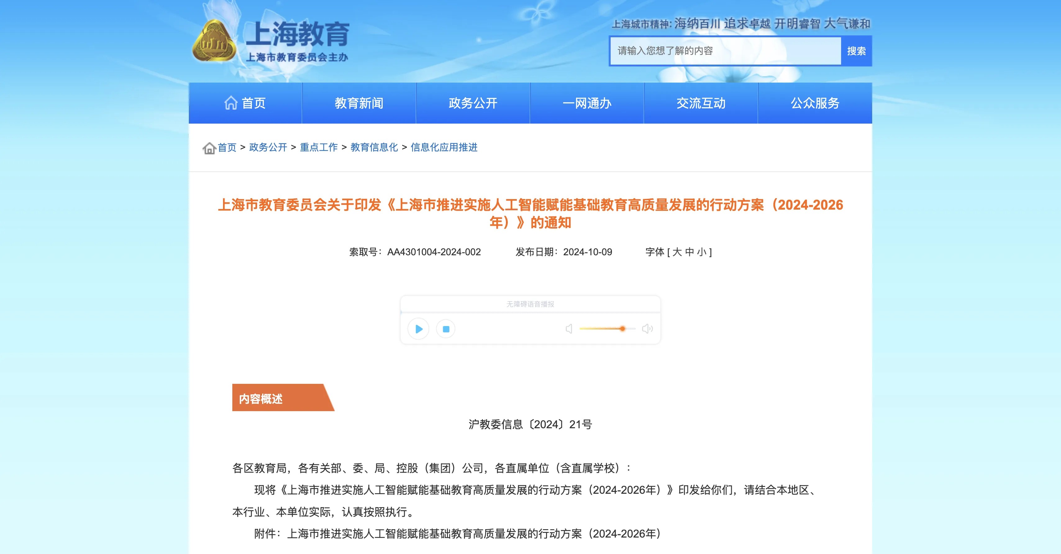 上海的政策目標(biāo)著眼于將人工智能深度融入基礎(chǔ)教育,特別是在中小學(xué)階段的課程建設(shè)和教學(xué)資源開發(fā)。