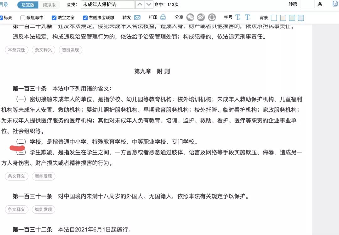 此外,今年6月1日,新修訂的《未成年人保護(hù)法》正式施行?!段闯赡耆吮Wo(hù)法》附則中對(duì)校園欺凌做了定義,叫“學(xué)生欺凌”。