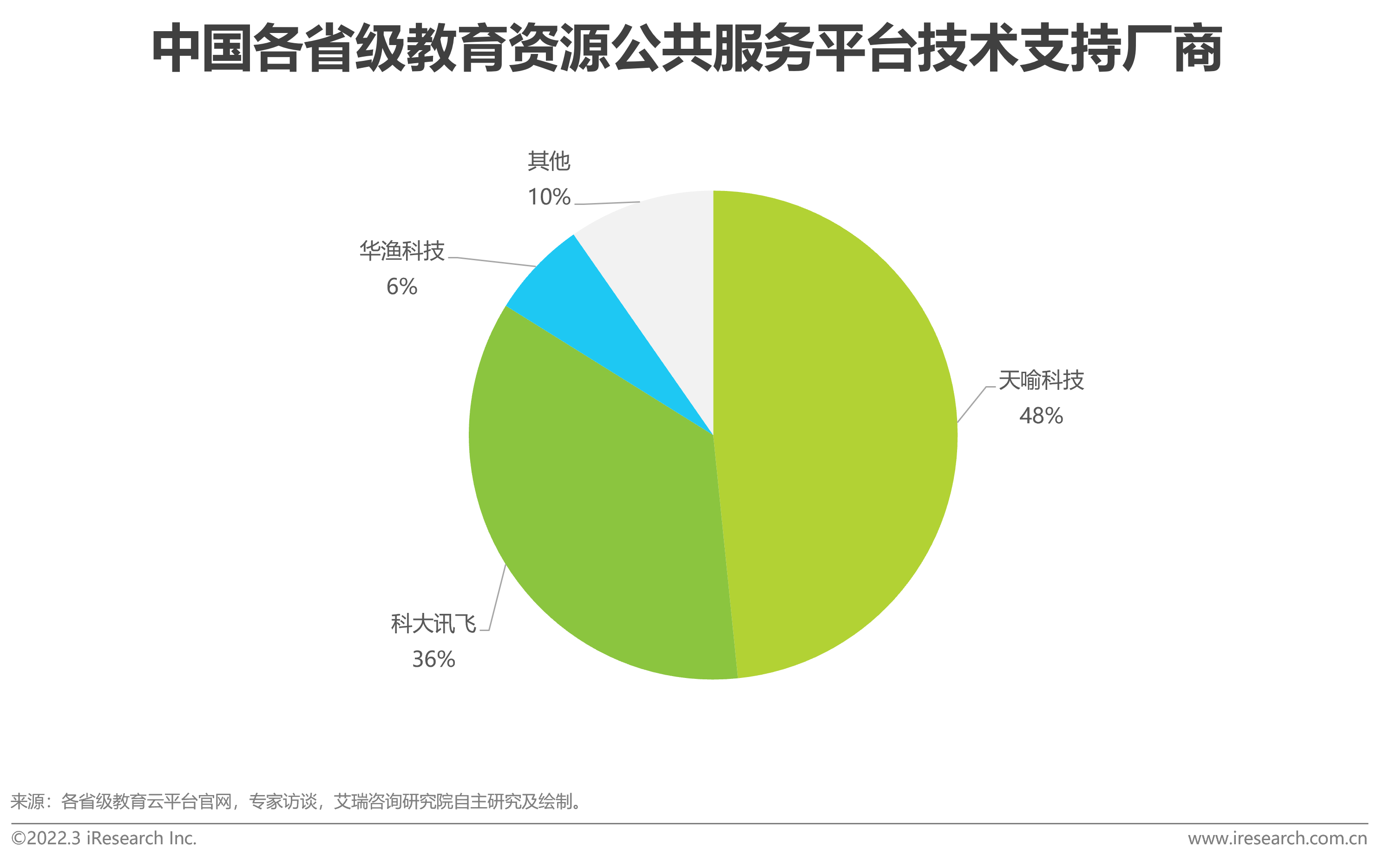 根據(jù)教育部頒布的《中小學數(shù)字校園建設(shè)標準》(試行)》,數(shù)字校園建設(shè)應(yīng)采用云服務(wù)模式統(tǒng)一規(guī)劃與分步實施,中小學信息系統(tǒng)上云早已成為共識。具體來看,地方教育部門高度重視區(qū)域級教育數(shù)據(jù),學校教育教學及管理服務(wù)信息系統(tǒng)多部署在學校機房和公共教育云平臺,采用本地化或混合云的部署方式。目前,省級教育資源公共服務(wù)平臺已經(jīng)全部接入國家級平臺,受教育信息化1.0歷史原因影響,我國省級教育資源公共服務(wù)云平臺主要由背靠華中科技大學的天喻信息和背靠中國科技大學的科大訊飛主持開發(fā),格局相對穩(wěn)定,而市級以下區(qū)域云平臺多由地方性教育云廠商開發(fā),市場高度分散。