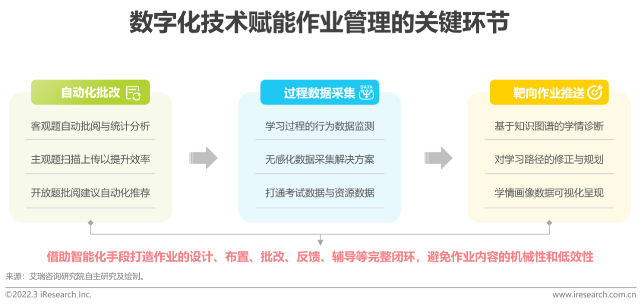 學生作業(yè):失焦失控→基礎(chǔ)性作業(yè)自動批改,全過程數(shù)據(jù)有效采集,實現(xiàn)靶向作業(yè);