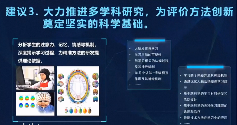 其中有很多基礎(chǔ)性的工作需要做,需要跨學(xué)科的研究,不能就教育評價方法講教育評價方法,如果脫離了學(xué)生知識學(xué)習(xí)的過程、能力發(fā)展的過程、品德形成的過程,不論我們的教育評價是智能的還是不智能的,都不會有很好的效果。