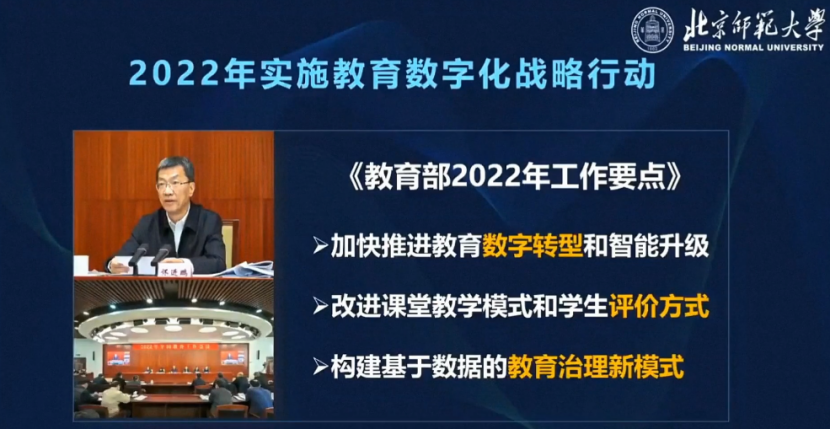2022年實(shí)施教育數(shù)字化戰(zhàn)略行動?!督逃?022年工作要點(diǎn)》中提出:加快推進(jìn)教育數(shù)字轉(zhuǎn)型和智能升級,改進(jìn)課堂教學(xué)模式和學(xué)生評價方式,構(gòu)建基于數(shù)據(jù)的教育治理新模式。