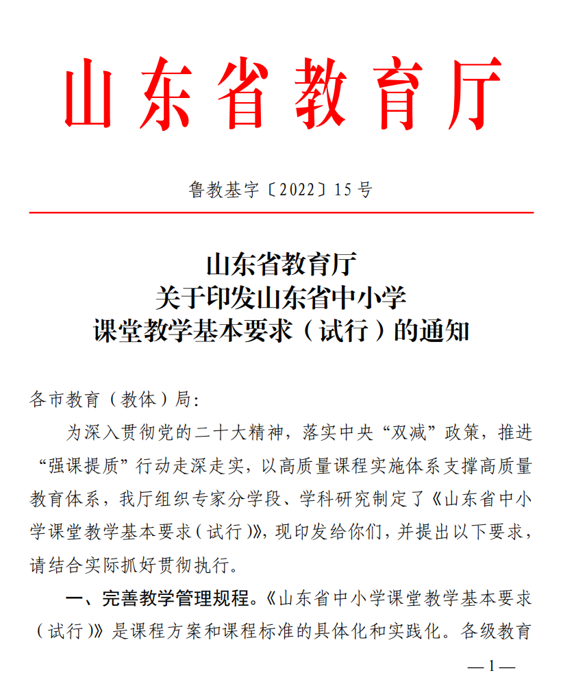01《山東省中小學課堂教學基本要求(試行)的通知》
