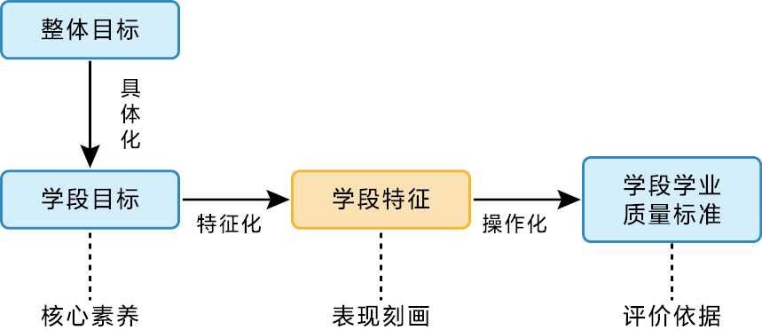 圖2?核心素養(yǎng)學段目標、特征與學業(yè)質(zhì)量標準的關系