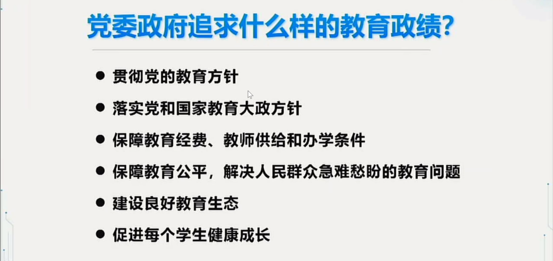 我們的黨委政府到底要追求什么樣的教育政績?我想有六個方面。