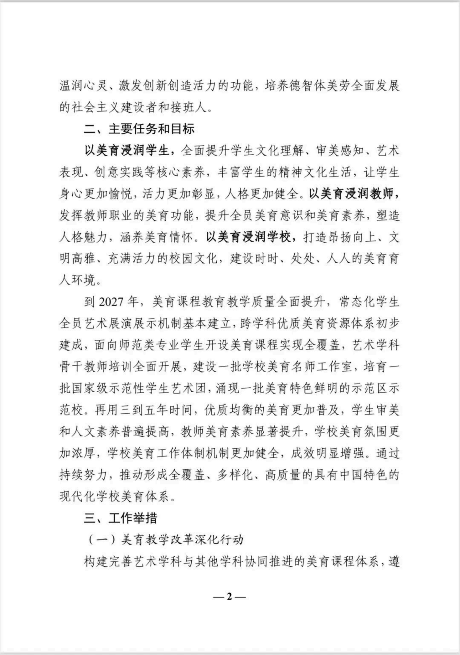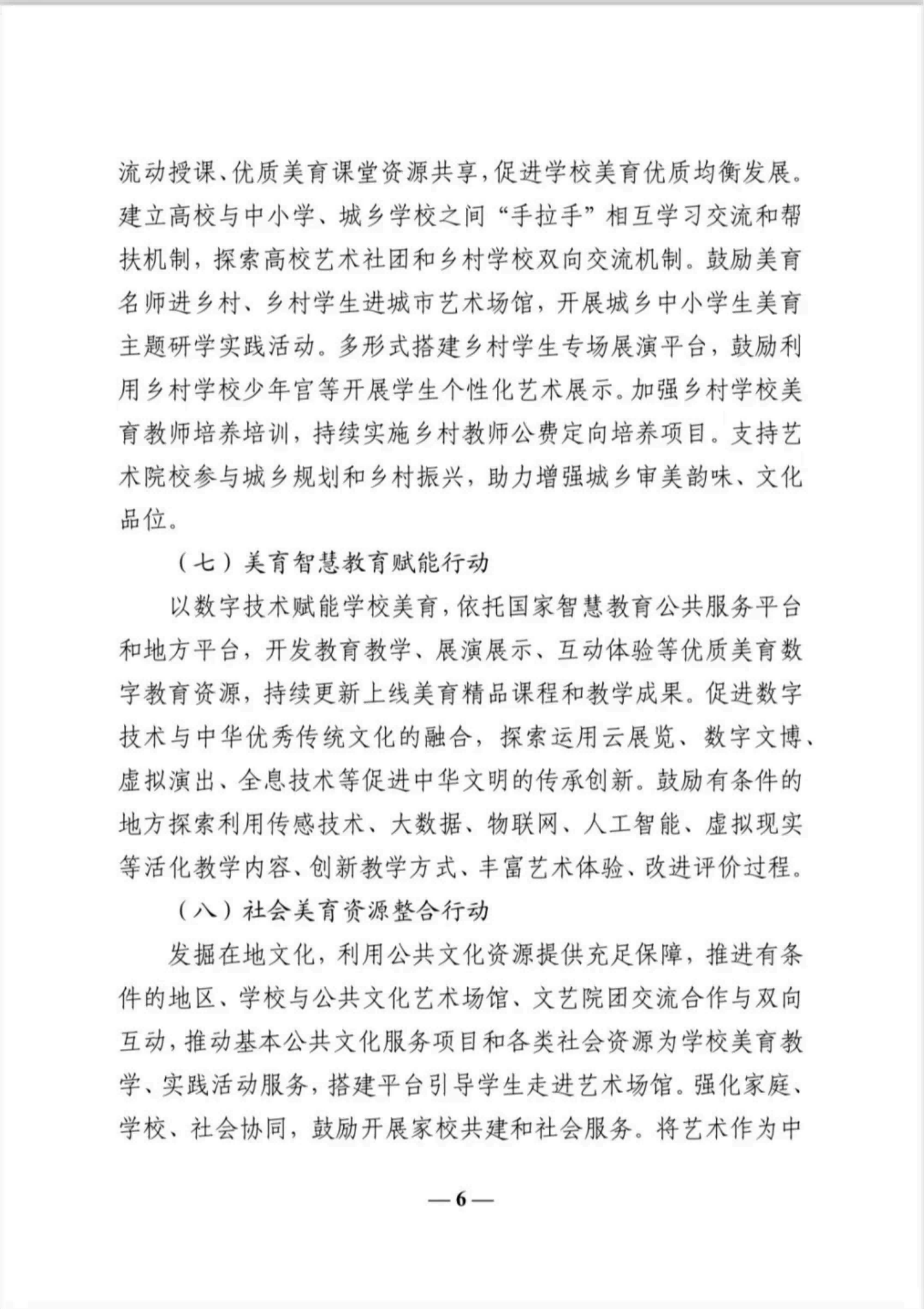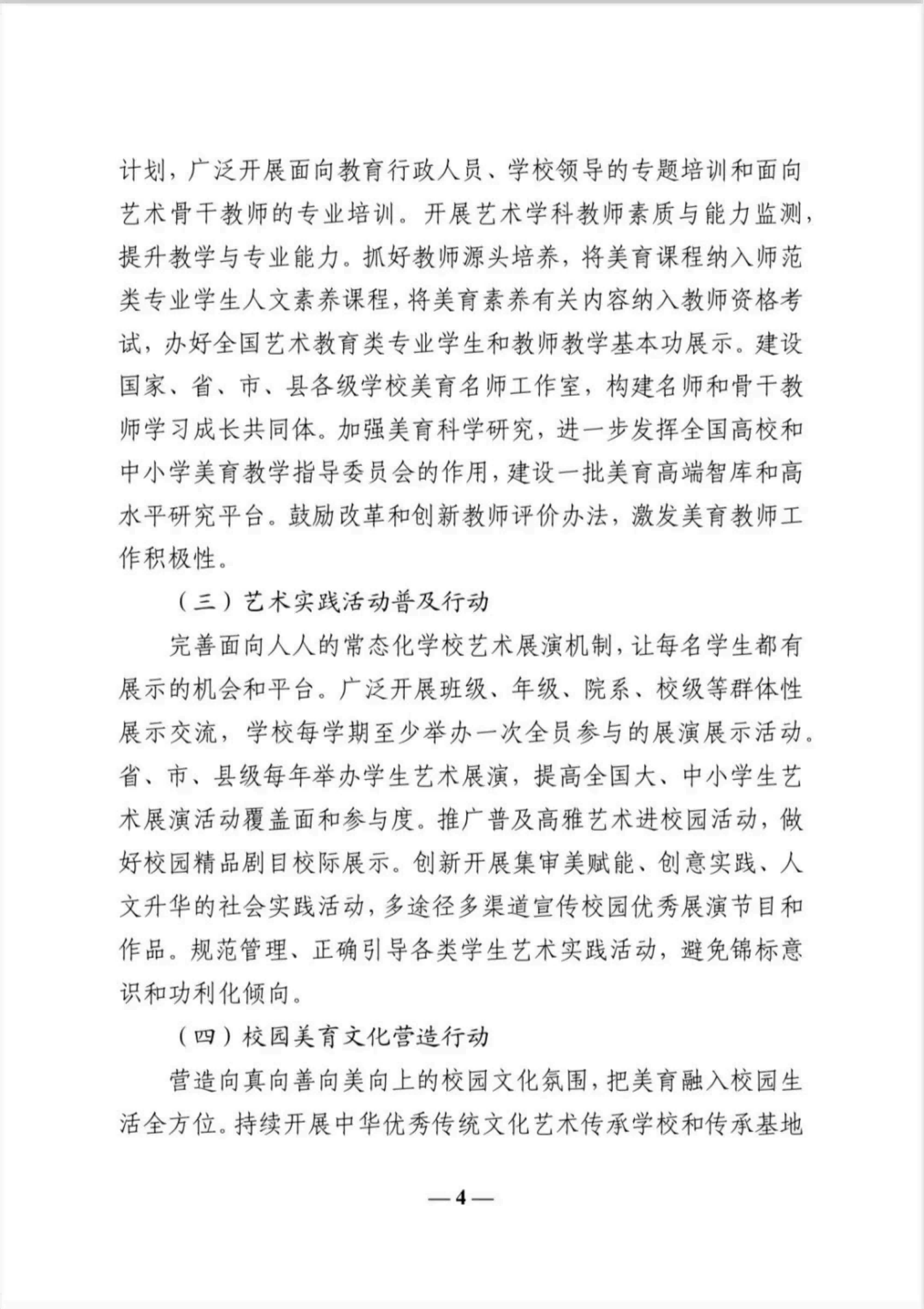 《關(guān)于全面實(shí)施學(xué)校美育浸潤(rùn)行動(dòng)的通知》原文: