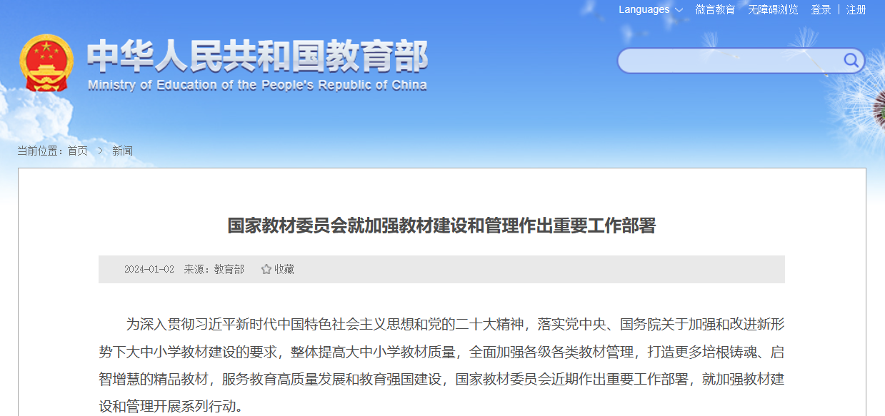為深入貫徹習(xí)近平新時代中國特色社會主義思想和黨的二十大精神,落實黨中央、國務(wù)院關(guān)于加強(qiáng)和改進(jìn)新形勢下大中小學(xué)教材建設(shè)的要求,整體提高大中小學(xué)教材質(zhì)量,全面加強(qiáng)各級各類教材管理,打造更多培根鑄魂、啟智增慧的精品教材,服務(wù)教育高質(zhì)量發(fā)展和教育強(qiáng)國建設(shè),國家教材委員會近期作出重要工作部署,就加強(qiáng)教材建設(shè)和管理開展系列行動。