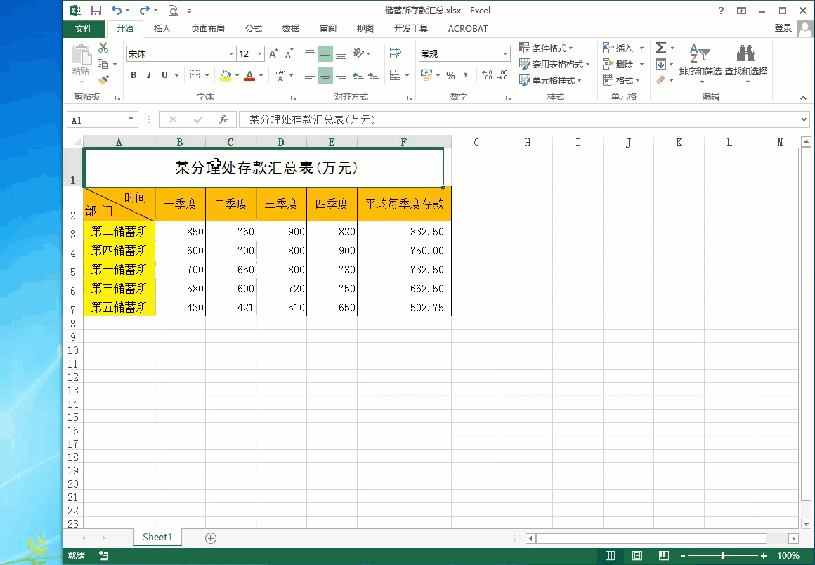 選中單元格區(qū)域A2:F7,在開始選項卡的編輯功能區(qū)中,左鍵點擊排序和篩選,在下拉菜單中左鍵點擊自定義排序。在排序?qū)υ捒蛑?,啟用?shù)據(jù)包含標題,將主要關(guān)鍵字設(shè)置為“平均每季度存款“,將次序設(shè)置為降序,左鍵單擊確定按鈕完成排序。